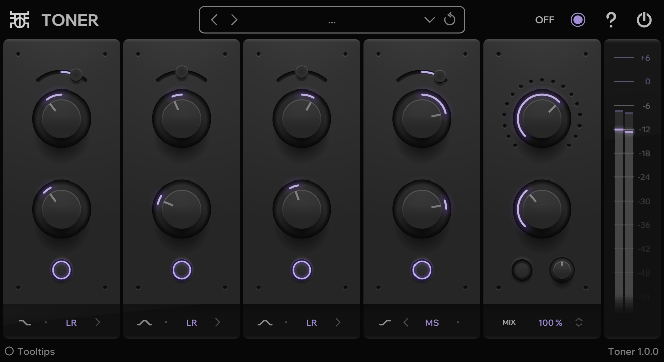 Four band tone shaping EQ with saturation and de-emphasis. Add warmth and clarity to your sounds.